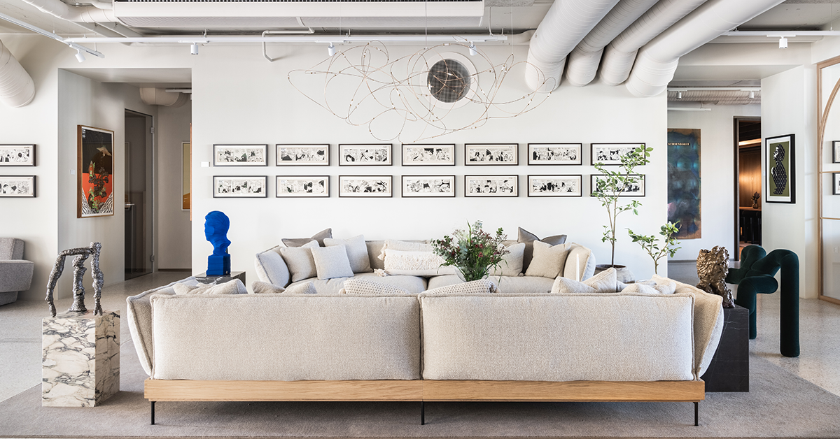 - Alt er design-relatert. Man har Krohnark som er interiørarkitekter, Rosser reklamebyrå, fashion med Krohn Suits, Arne Sørvig som er leder for Bocuse d'Or og Skyhome som jobber med software-løsninger for interiørdesignere. Alt er samlet under samme tak og har sine arbeidsplasser hos House of Krohn. I tillegg er all kunsten i lokalene fra Heine Larsen - og all kunsten er til salgs, forteller Margrethe Hvesser.